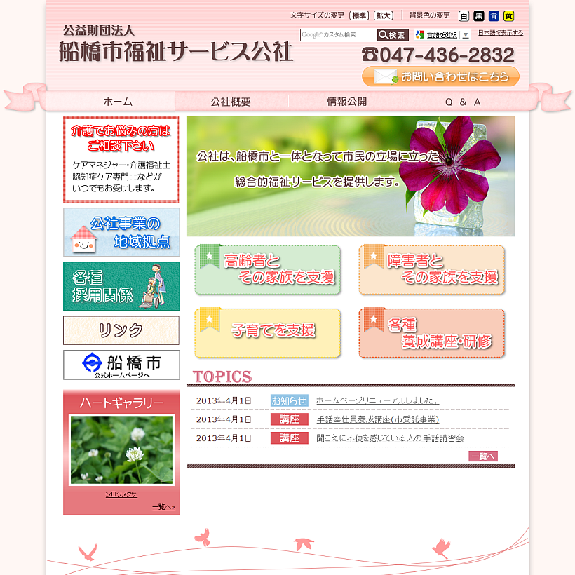 船橋市市民の福祉の増進を目的とする各種サービス事業、それらを担う人材育成・設備の拡充を行っている「公益法人 船橋市福祉サービス公社」様。